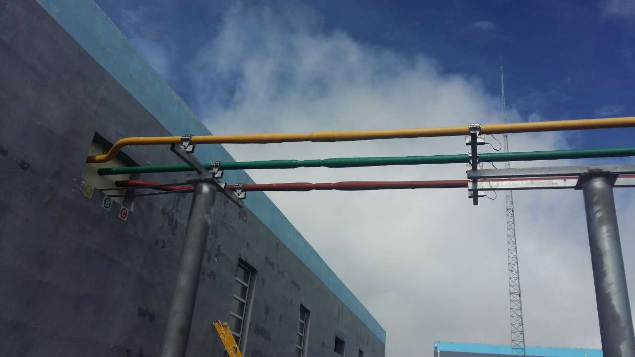 固體絕緣管型母線主體允許應(yīng)力為矩形母線的4倍,可承受的短路電流大,機(jī)械強(qiáng)度高,使得母線支撐跨距可達(dá)8米。